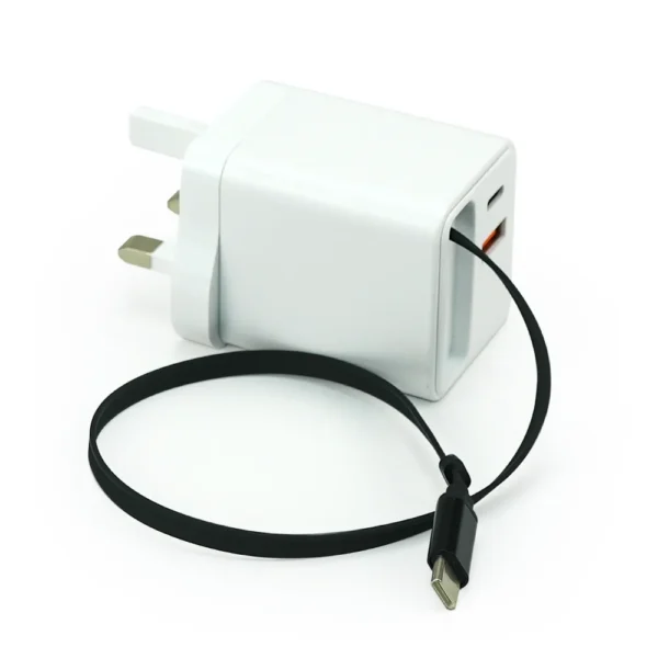 80W GaN Fast Charger Adaptor with Retractable Built-in Type-C Cable