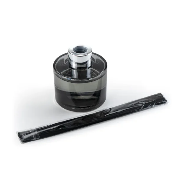Create a warm and luxurious ambience with this Aroma Reed Diffuser infused with a rich Kashmir Wood fragrance. Crafted in a decorative transparent black round glass bottle, this flameless diffuser provides a long-lasting scent experience without heat or electricity. An ideal choice for corporate gifting, hospitality branding, home décor, and premium promotional use.